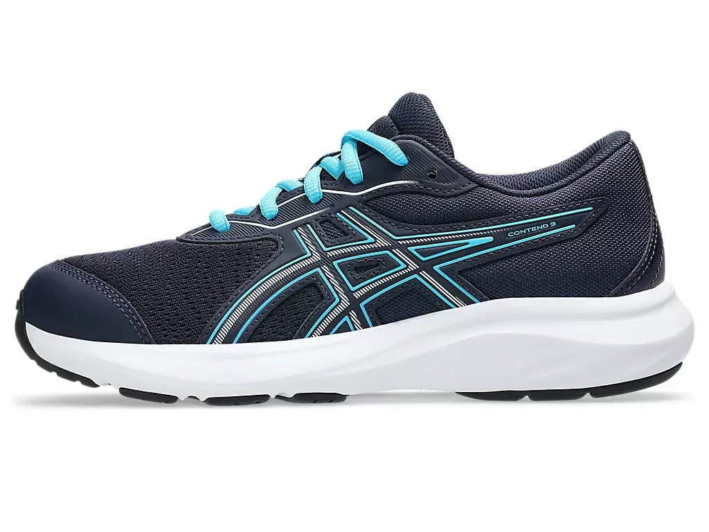 The CONTEND™ 9 GRADE SCHOOL shoe is designed for young feet. Details like the toe reinforcement, toe rubber stitching, and solid rubber outsole increase durability and lengthen the shoe’s lifespan.