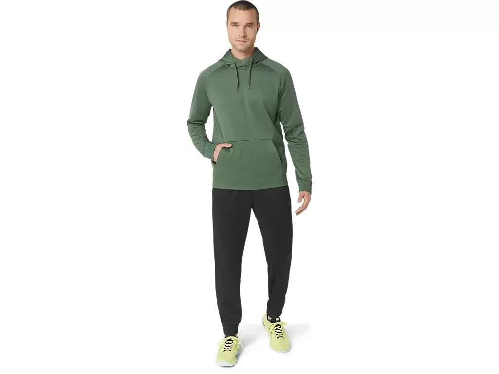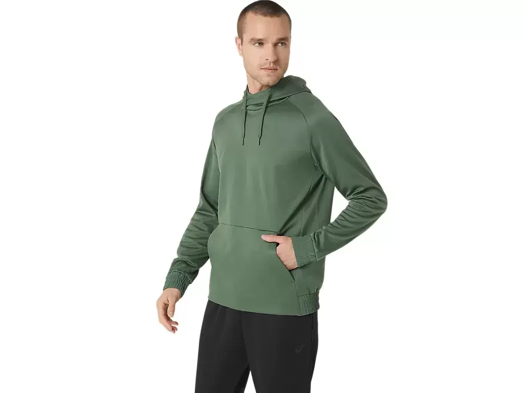 The BRUSHED FLEECE PULLOVER HOODIE is a versatile cold weather staple for your training.