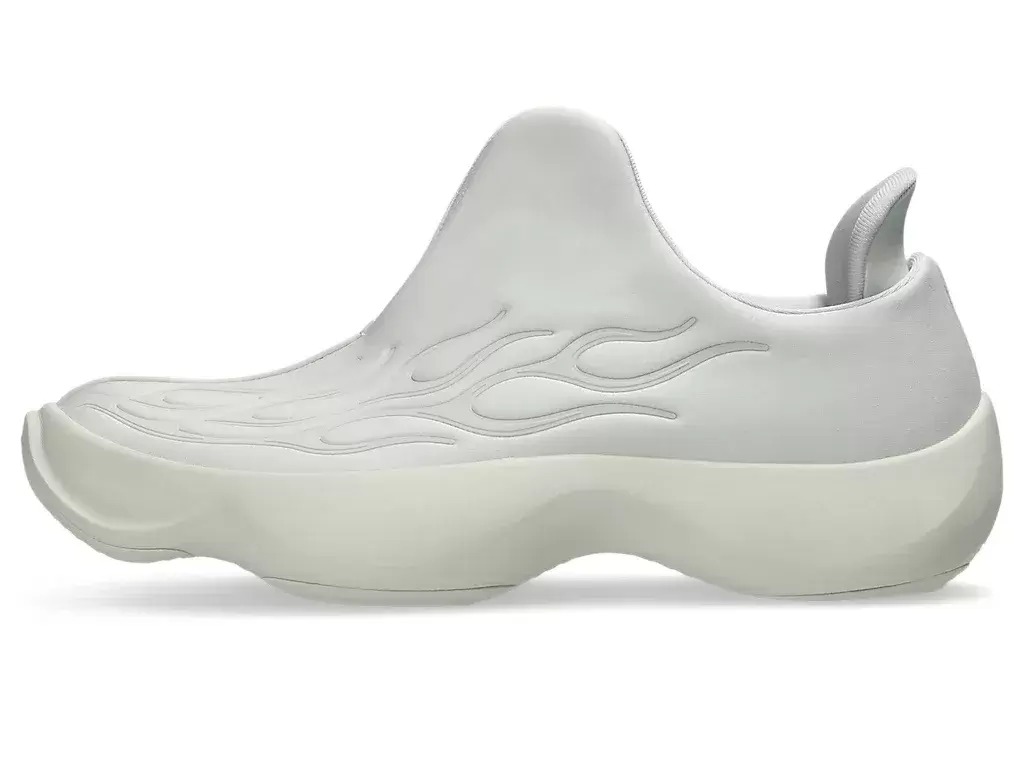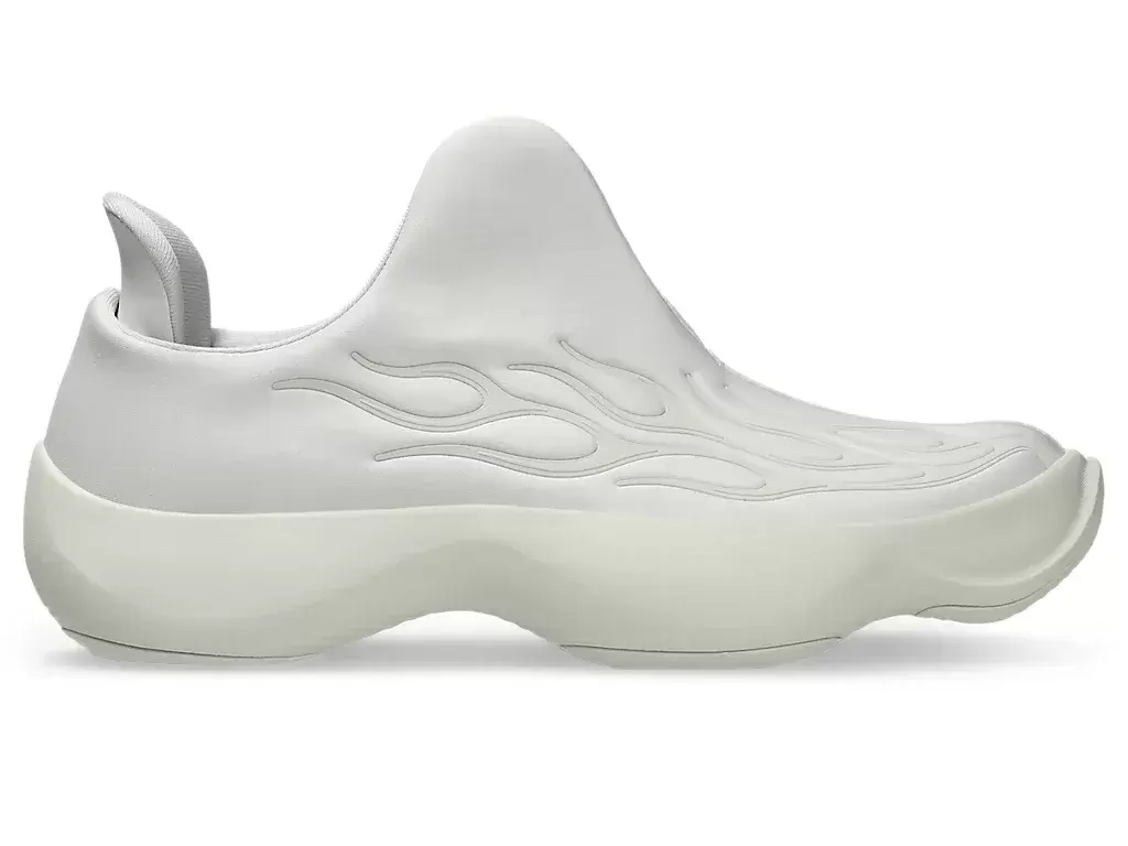 Key details on the shoes include easy on and off functionality, supportive components, and a strategically designed sole. A soft, lightweight mesh is reinforced by a TPU cage with a flame pattern on the upper to help increase stability during various movements.