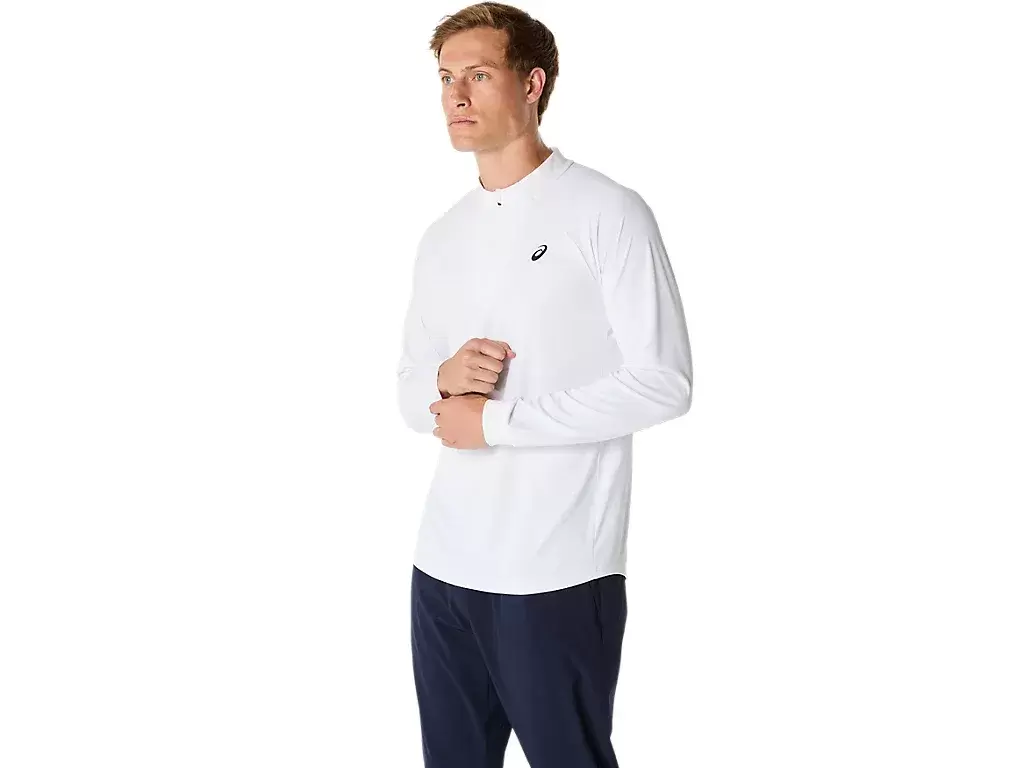 The MATCH LONG SLEEVE 1/2 ZIP TOP is a comfortable garment for warm-ups, cool-downs, and post match.
