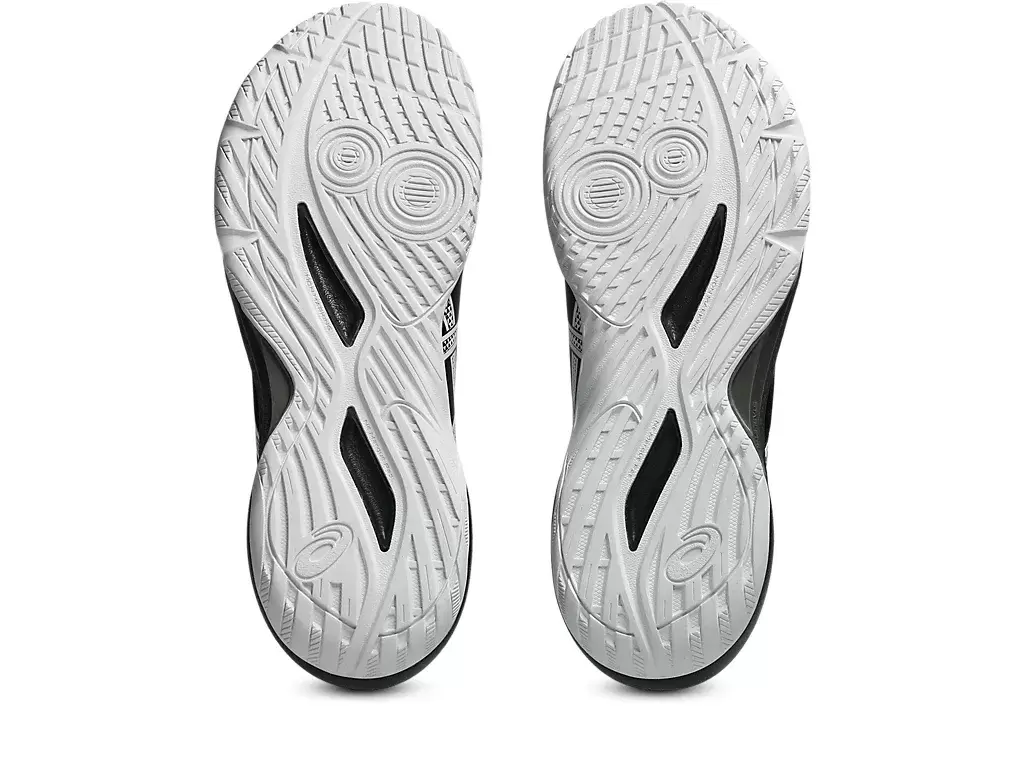 The circular outsole patterns with horizontal grooves are designed to provide advanced traction during side-to-side movements. They help facilitate a quick weight transfer from the center to the inside for a more balanced feel.
