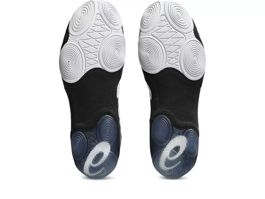Functional for improving traction on mat surfaces, the shoe also incorporates flexion grooves in the outsole for better flexibility.
