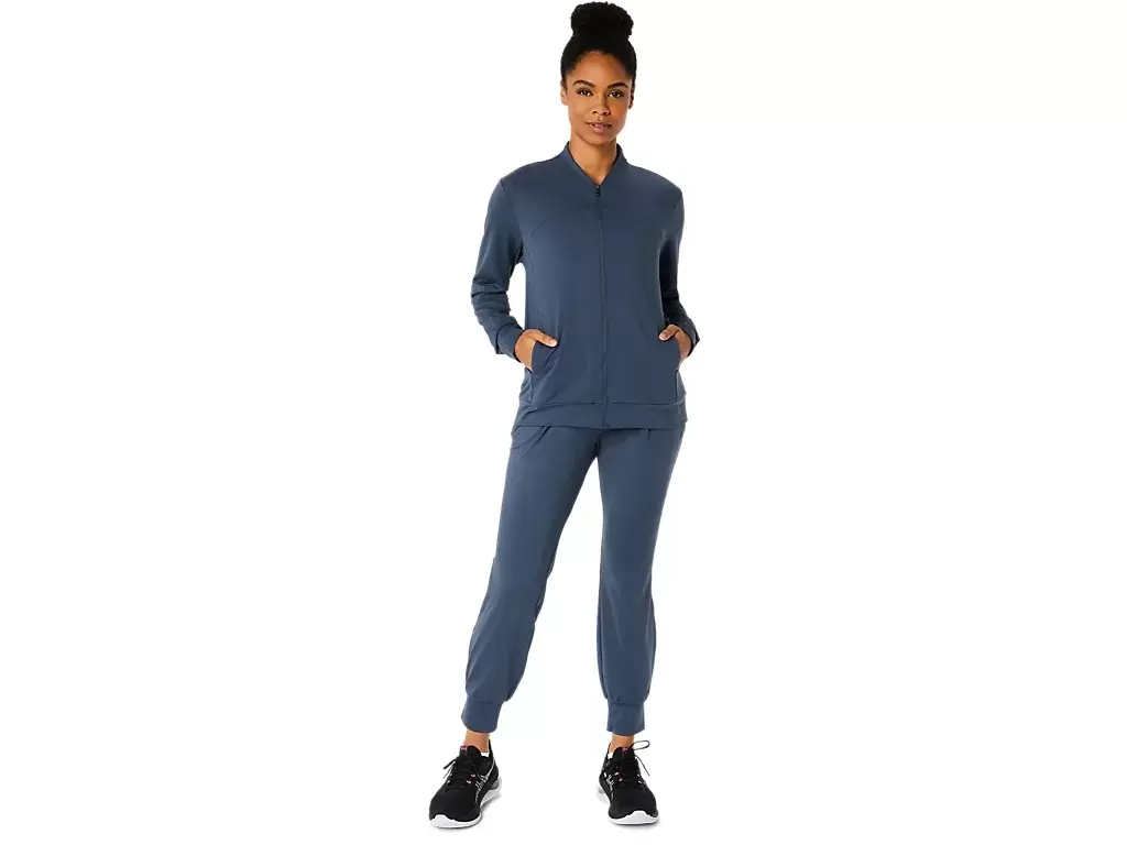 This jacket features a soft, stretchy knit fabric that’s comfortable for various activities.
