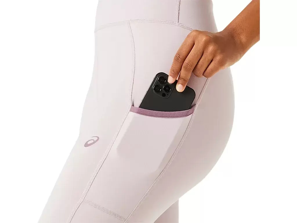 The tight is created with a v-cut waistband design and features a special thin, flat, high waist elastic band that provides stability and breathability and side pockets for stashing smaller essentials.