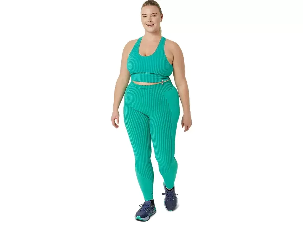 The garment’s seamless construction, rib texture, and high waist design are designed to help you keep more comfortable throughout your training.