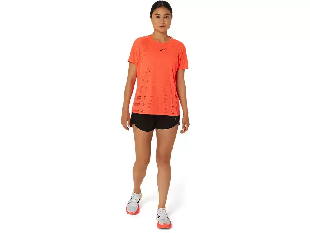 Breeze through your warm-weather runs with the ASICS® pinnacle METARUN® SHORT SLEEVE TOP