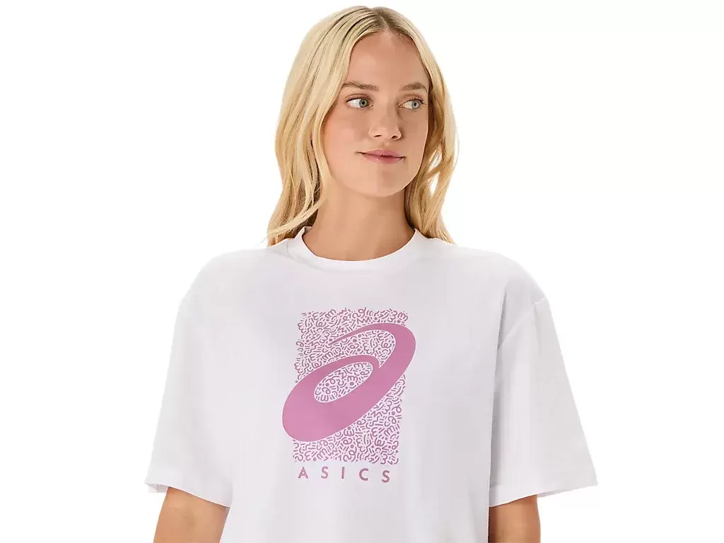 The top is also complimented with a seasonal ASICS® Spiral graphic, a cropped length, relaxed fit design, and side slits for ease of movement.