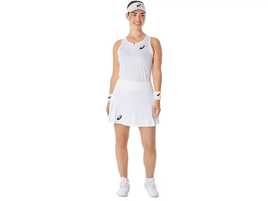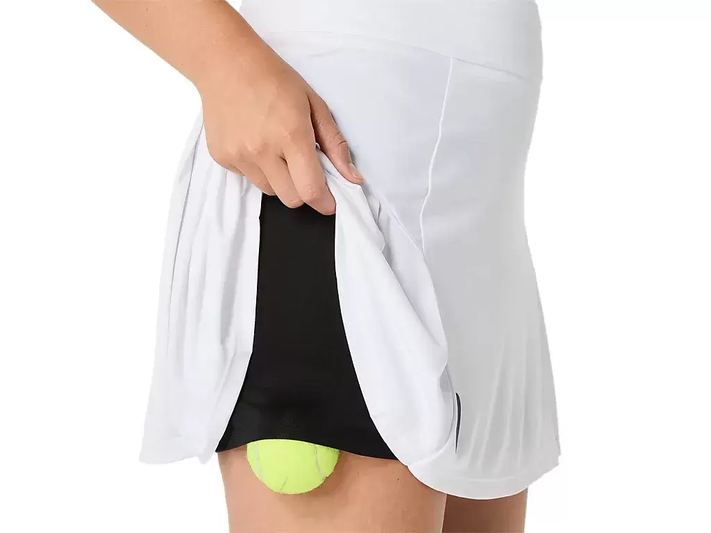 The skort is lightweight, flexible, and quick-drying, helping you stay focused throughout the match. The skort also features a built-in sprinter for added comfort and ball storage. Additional, the skort is complimented with a flattering waistband and origami side pleats for increased freedom of movement.