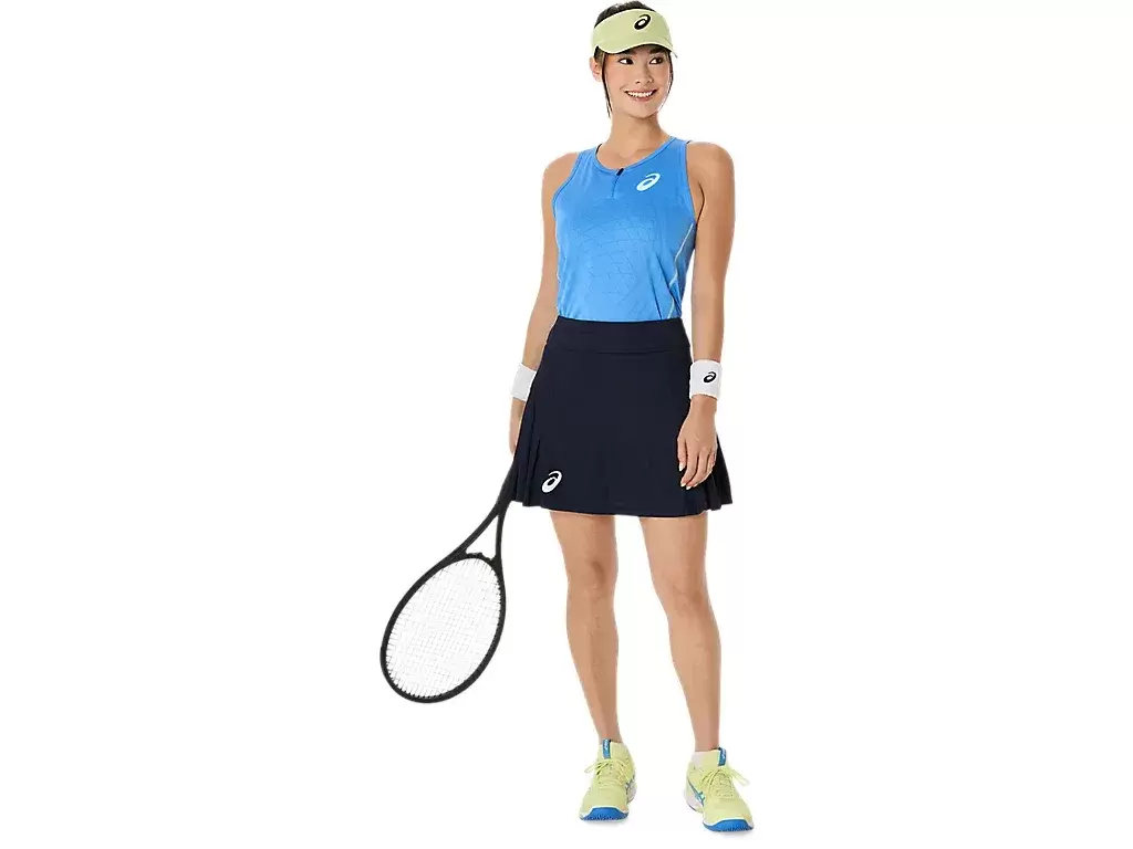 The skort is lightweight, flexible, and quick-drying, helping you stay focused throughout the match. The skort also features a built-in sprinter for added comfort and ball storage. Additional, the skort is complimented with a flattering waistband and origami side pleats for increased freedom of movement.